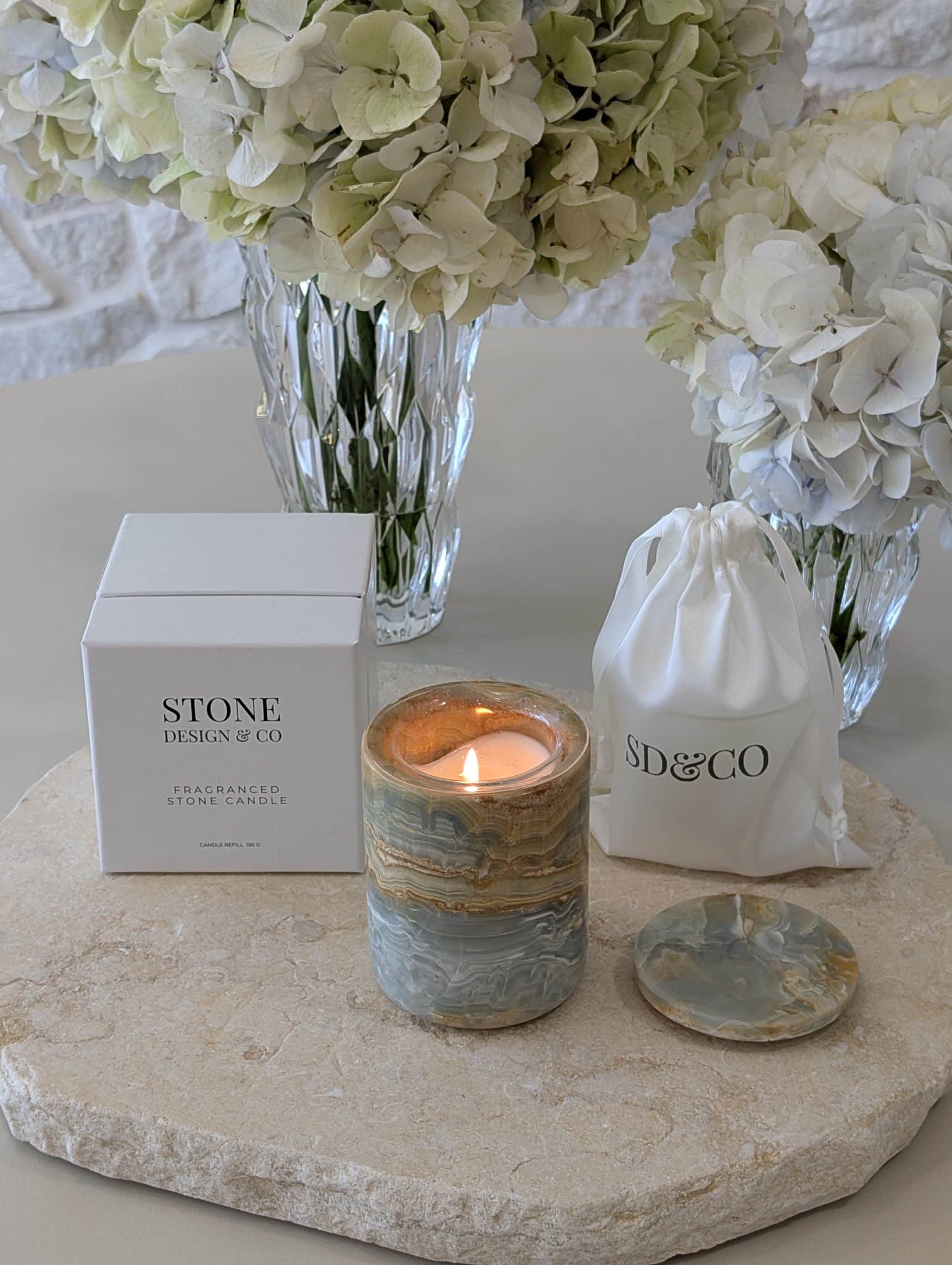 Blue Onyx Stone Fragranced Candle with Glass Insert