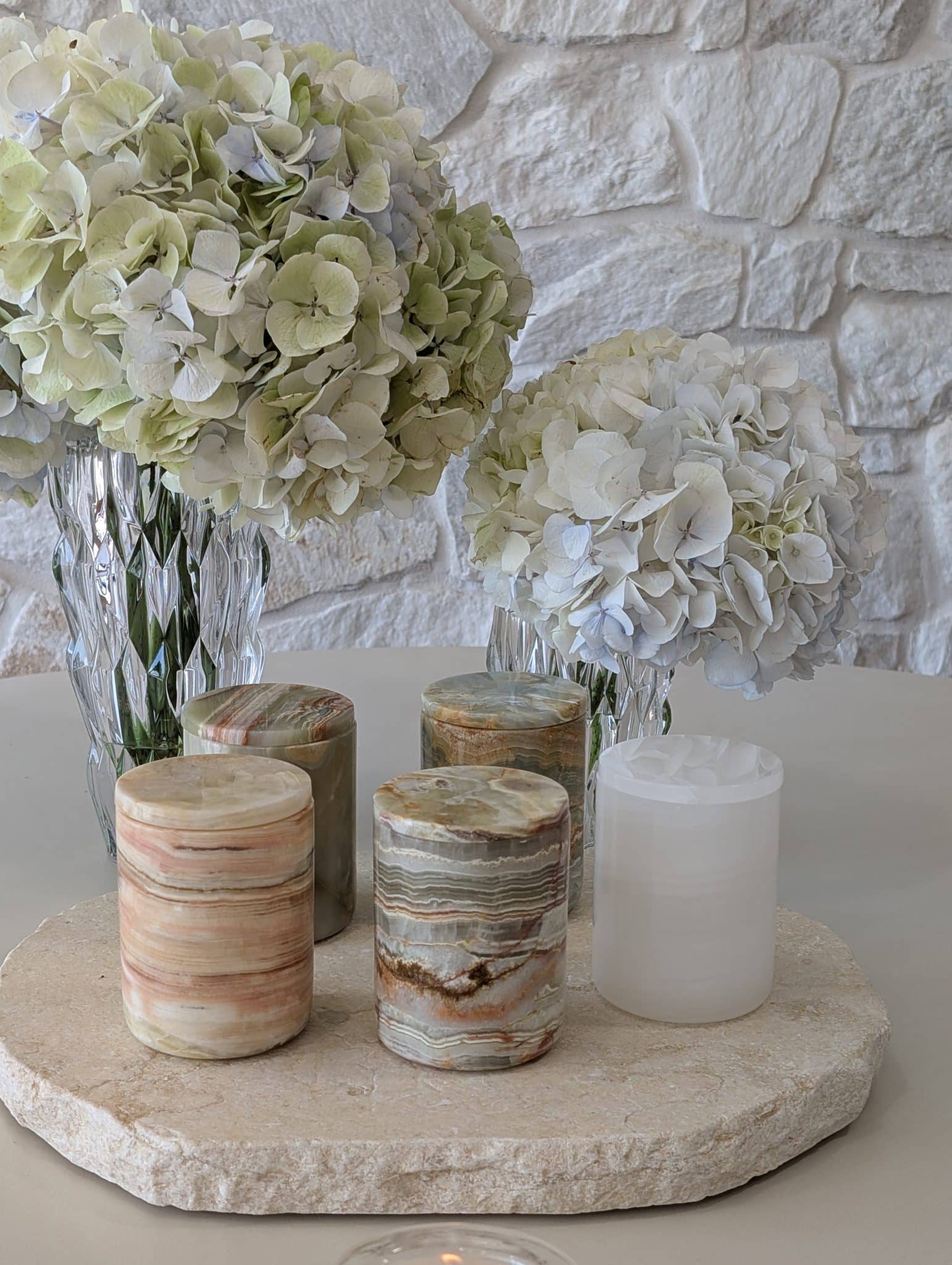Blue onyx is prized for its depth, translucency, and distinctive veining. Sourced from Brazil, no two vessels are ever the same, each shaped by the stone’s natural formation. Much like personal style, every piece is inherently individual. We have carefully curated a selection of onyx vessels for you to choose from, making each candle a truly one-of-a-kind experience.