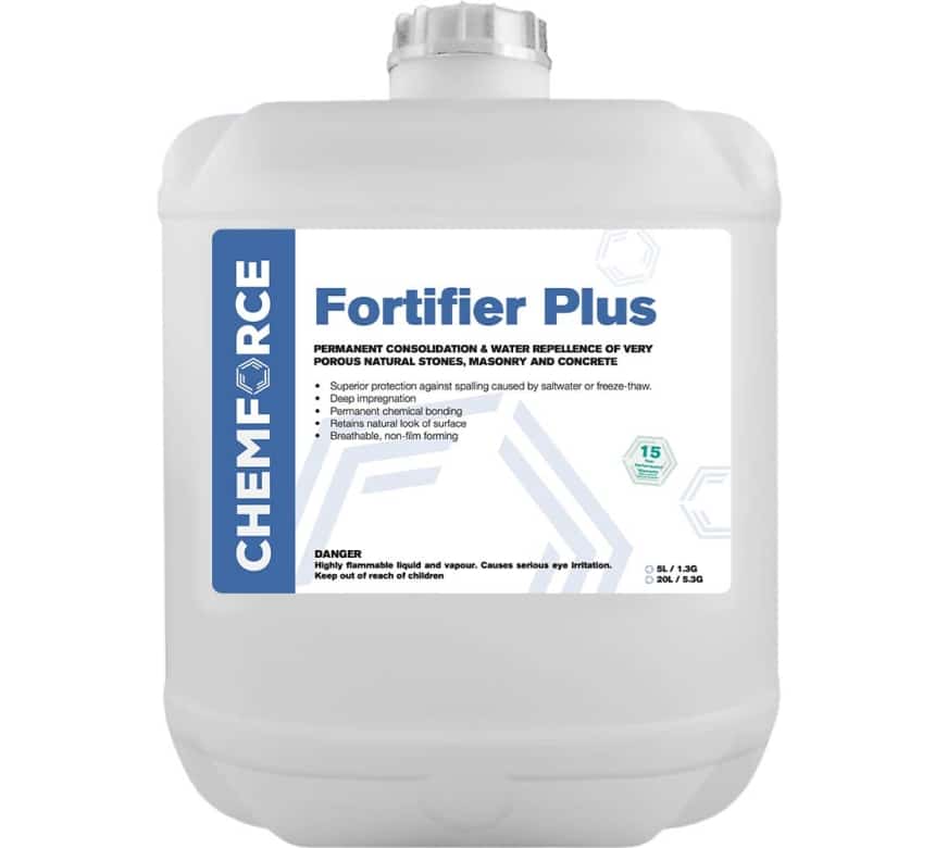 WARNING: Fortifier PlusTM will not prevent acid etching or physical wear of the surface. Fortifier PlusTM increase the strength of the surface by up to 40% – this may not be enough to make a very soft, unsuitable stone fit for purpose in a salt water or freeze-thaw environment.