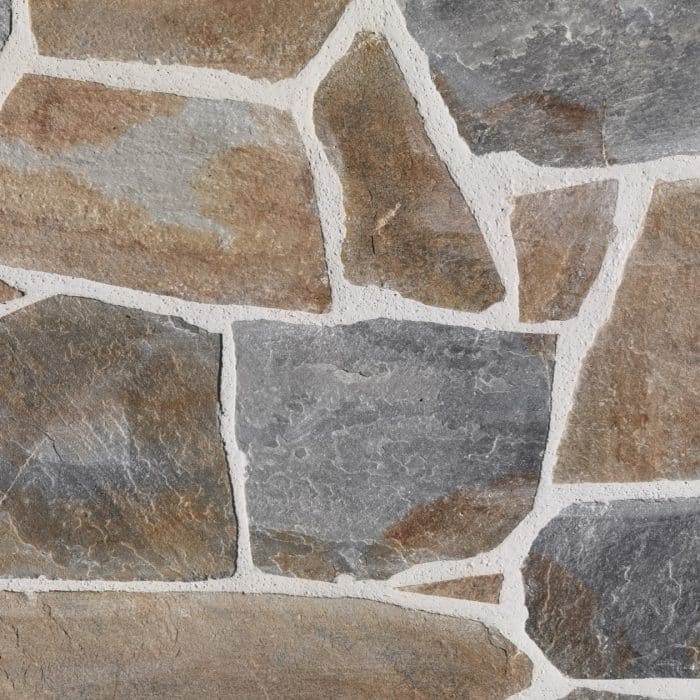 This crazy paving is an artisan crafted stone with split edges and a splitface surface for an organic aesthetic.