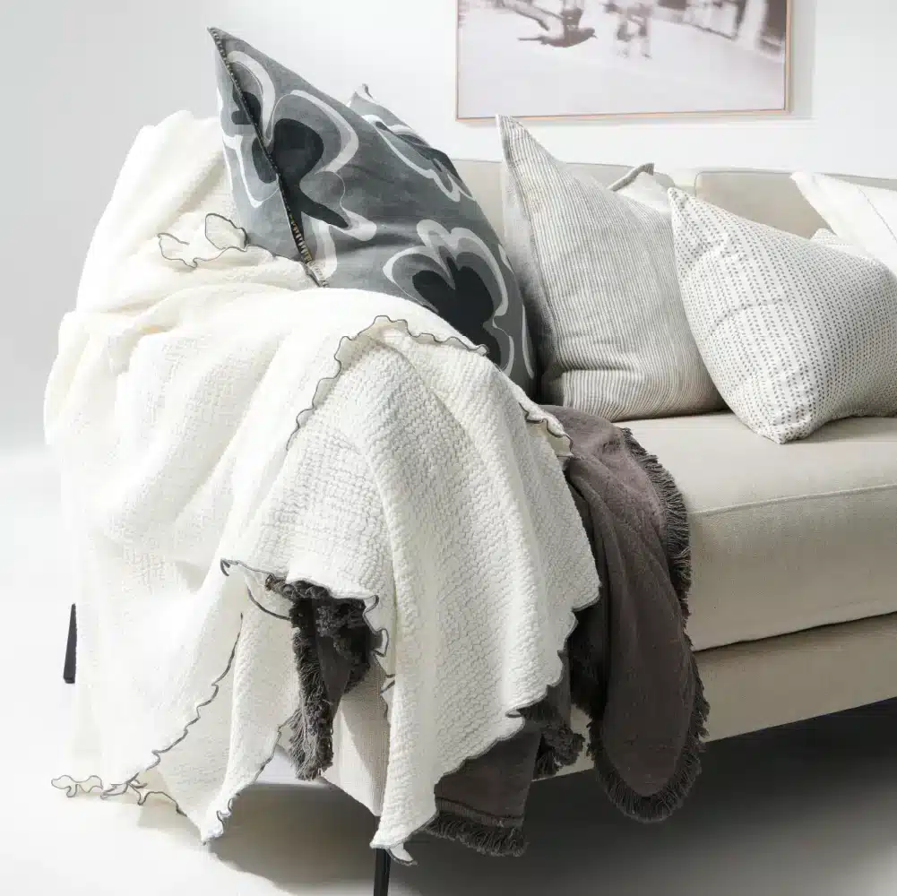 No matter what your colour scheme is, the Myra cushion will add coastal yet effortless luxury to your home. Made from a weighted linen/cotton blend.
